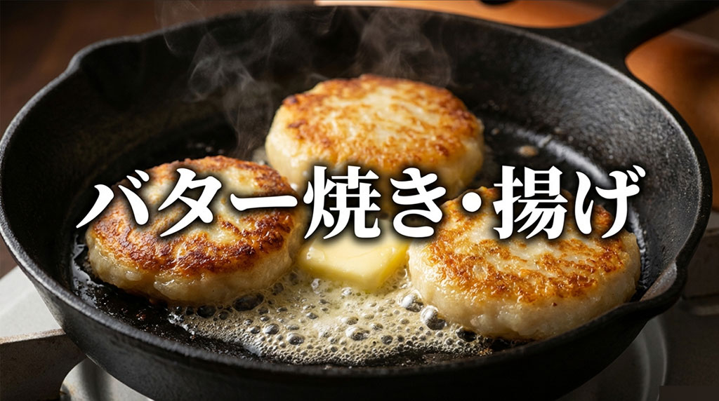 いももちを最高に美味しく仕上げるためには、最後の調理工程が肝心です。通販で届くいももちは既に加熱済みのものが多いですが、冷たいままではあのモチモチ感は味わえません。一番のおすすめは「フライパンでじっくり焼く」方法です。多めの油(できればバターを一欠片加えると風味アップ!)をひき、凍ったままのいももちを並べて弱火から中火で蓋をして蒸し焼きにします。最後に強火で表面に焦げ目を付ければ、外はカリッ、中はトロッとした完璧な状態に仕上がります。