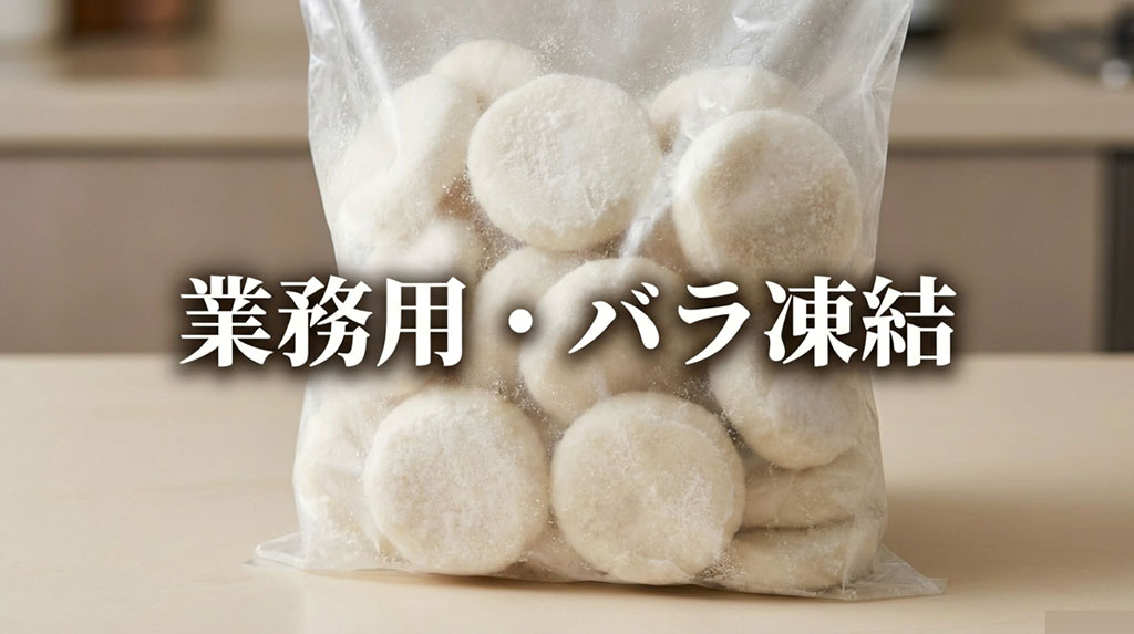 通販で販売されているいももちのほとんどは冷凍状態(フローズン)で届きます。冷凍庫に常備しておけば、急な来客や「あと一品」という時にサッと出せるので、主婦・主夫の強い味方です。選ぶ時に特に注意したいのが、「バラ凍結(IQF)」になっているかどうかです。一つ一つがバラバラに凍っていれば、袋から必要な数だけ取り出してすぐに調理できますが、大きな塊で凍っていると解凍が大変になってしまいます。